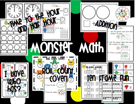 or if it is a Monster Math Pack you fancy...you can get this over 80 page pack for $3.20! It includes station or center activities for ten frame fun, addition, subtraction, time to the hour and half hour, tally marks, AND the Monster Munch Subtraction is included!