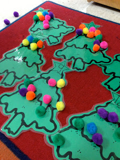 Just some Christmas trees with a number in the star and colorful pom poms.
