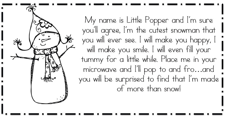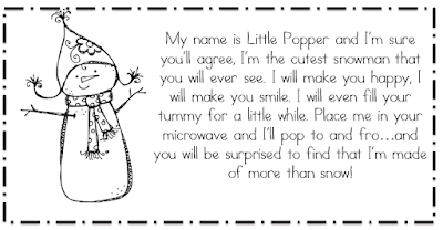 I've included the cutesy little poem I made to go along with Little Popper the popcorn snowman.