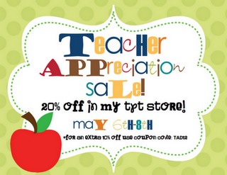 I was at the Beale St. Music Festival all weekend so I feel quite out of the loop and have lots of blogging to catch up on! I did want to let you know about the Teacher Appreciation Sale that Teachers Pay Teachers is having. If you use the code TAD12 at checkout, you can save an additional 10% off at checkout. Although I have way more for free than for sale in my store (nothing's wrong with that, right?!), everything in my store is 20% off until Wednesday! I'm also finishing up my end of year beach station pack that I should be posting by tonight. Click the picture below to go to my TpT store :)