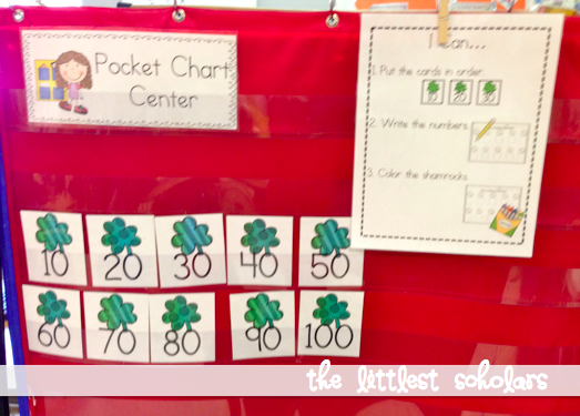 We practiced counting by 10s to 100 with this pocket chart center activity.
