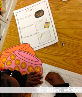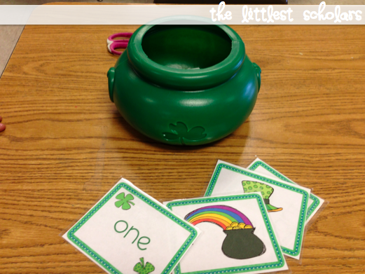 Some of my little scholars practiced counting quantities with colorful pots of gold.