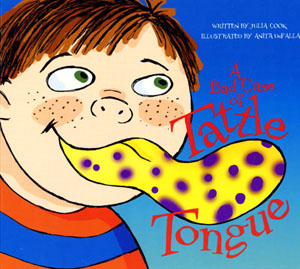A Bad Case of Tattle Tongue is about a young boy named Josh who doesn't have many friends. In fact, everyone at school called him "Josh the Tattler." His mom grew tired of the tattling and warned him of getting tattle tongue. With the help of Tattle Prince, Josh learned the difference between tattling and telling! You can learn more about the author, Julia Cook, by clicking the book cover below.