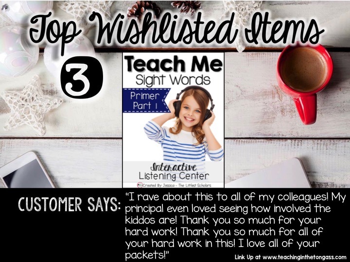 Rounding out the Top 3 Wishlisted Items from my TPT shop is my Teach Me Sight Words Primer Bundle Part 1. After seeing the impact my All About the Alphabet Interactive Listening Center had on my little scholars letters and sounds mastery, I created a version for sight words! This download