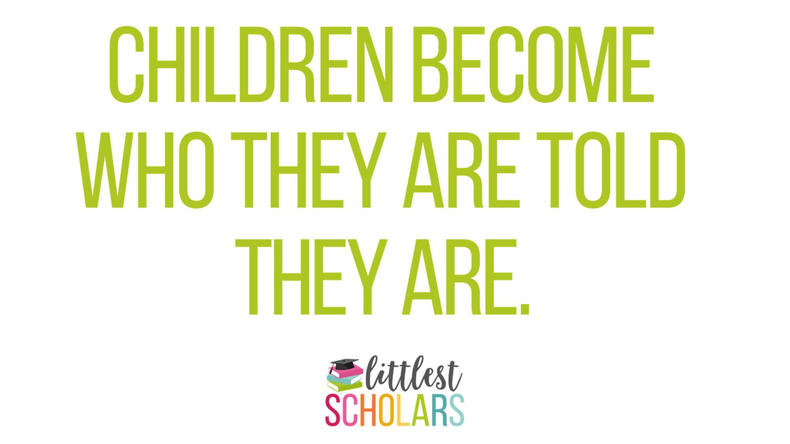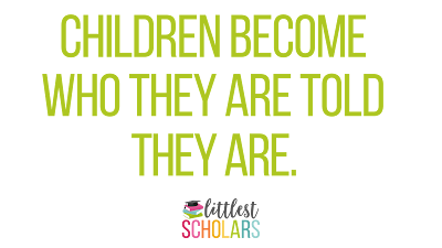 My belief that children become who we tell them they are inspired the name of this blog, Littlest Scholars. I call the children in my class scholars because that is how I want them to view themselves--constantly learning, growing, thinking, and developing. There are days where my patience is tested and the stress of this profession seems insurmountable but I keep this belief at the forefront of my mind. It my goal that each child who enters my classroom knows how capable, intelligent, and important they are.